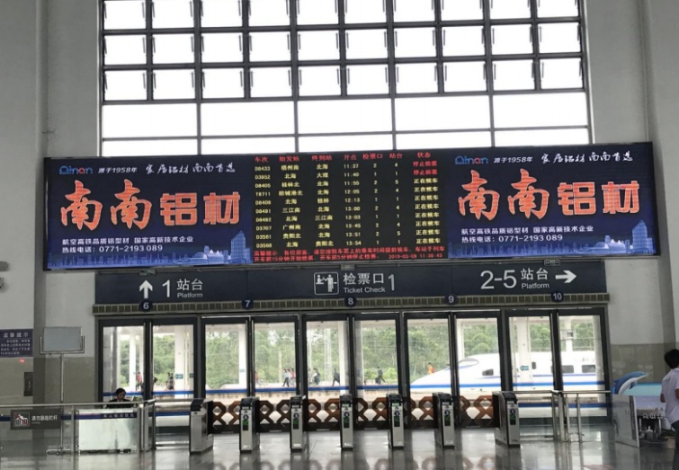 钦州东站进站大厅检票口上方LED显示屏【图片待完善】
